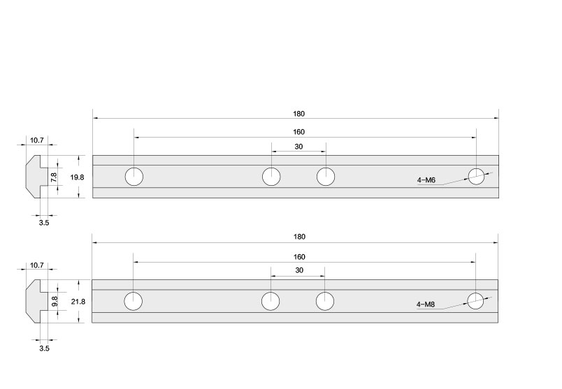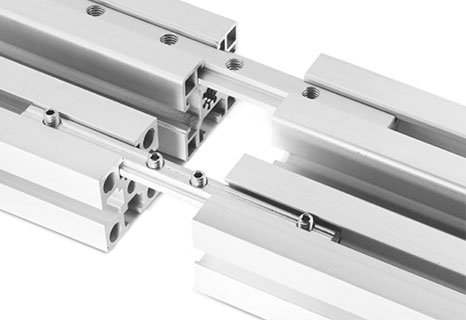 用于兩根型材之間直線加長連接,安裝時(shí)將其插入兩根型材對(duì)接觸槽坑內(nèi),然后用緊固螺絲鎖緊。