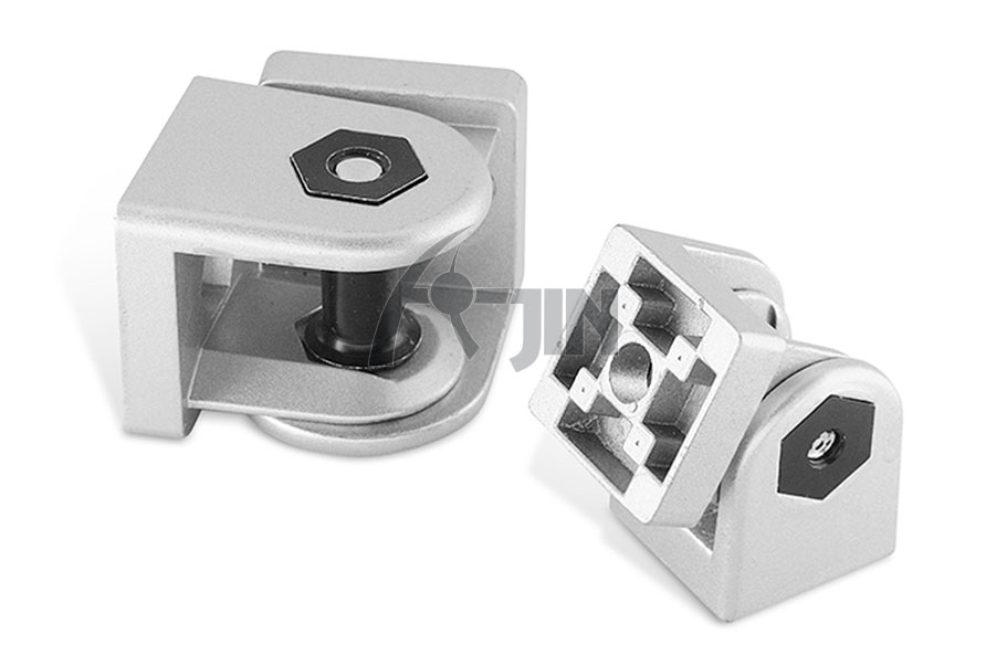 該鉸鏈用于兩段型材之間的活動連接,其旋轉(zhuǎn)范圍為180度,它有多種連接方式。