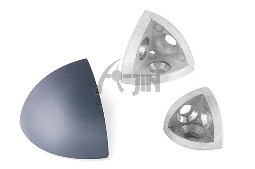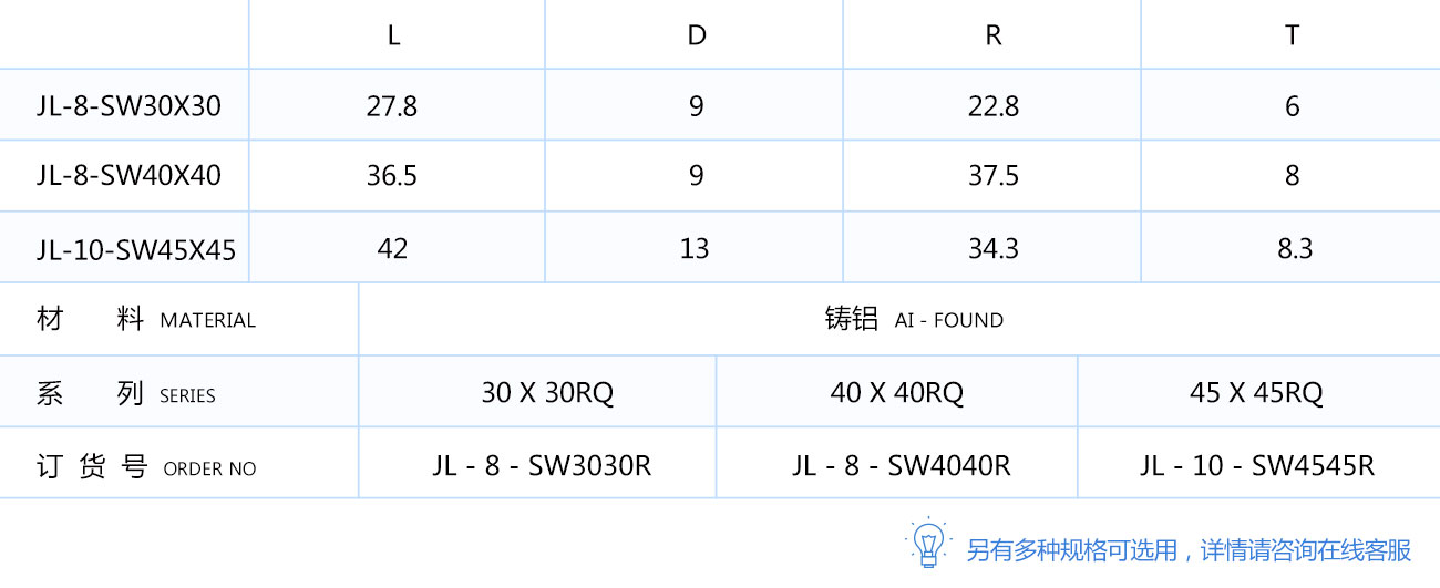 這種角連接是半圓形型材的專用連接件,它能把兩根或三根型材連接在一起,加之配套的蓋板,十分簡(jiǎn)潔美觀。連接螺栓需另配。