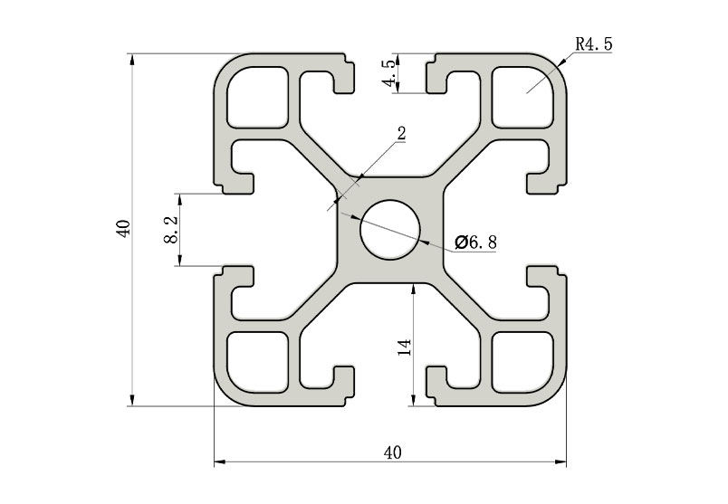 適用于應力及強度較大的框架組合結構,它的外型采用圓角過渡,表面經(jīng)過陽極氧化處理,高雅美觀并抗腐蝕,它通常采用M8X20高強度專用螺栓加彈性扣件的內(nèi)部連接方式,堅固而又可靠,是工業(yè)框架應用較為廣泛的型材之一。