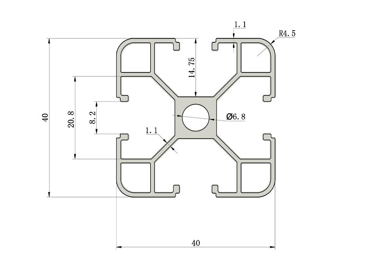 適用于應力及強度較大的框架組合結構,它的外型采用圓角過渡,表面經過陽極氧化處理,高雅美觀并抗腐蝕,它通常采用M8X20高強度專用螺栓加彈性扣件的內部連接方式,堅固而又可靠,是工業(yè)框架應用較為廣泛的型材之一。