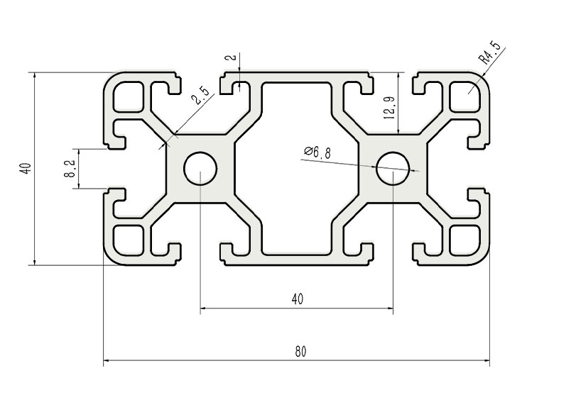 適用于應力及強度較大的框架組合結(jié)構(gòu),它的外型采用圓角過渡,表面經(jīng)過陽極氧化處理,高雅美觀并抗腐蝕,它通常采用M8X20高強度專用螺栓加彈性扣件的內(nèi)部連接方式,堅固而又可靠,是工業(yè)框架應用較為廣泛的型材之一。